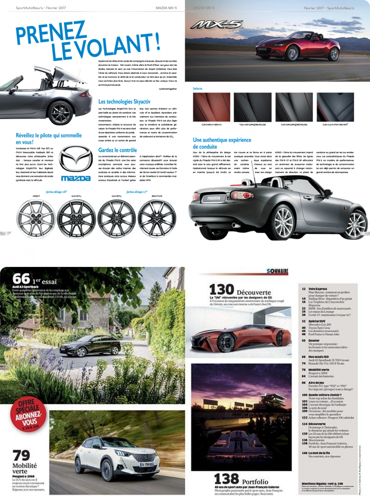 Étude d’exemples de magazines digitaux et de sites automobiles concurrents.